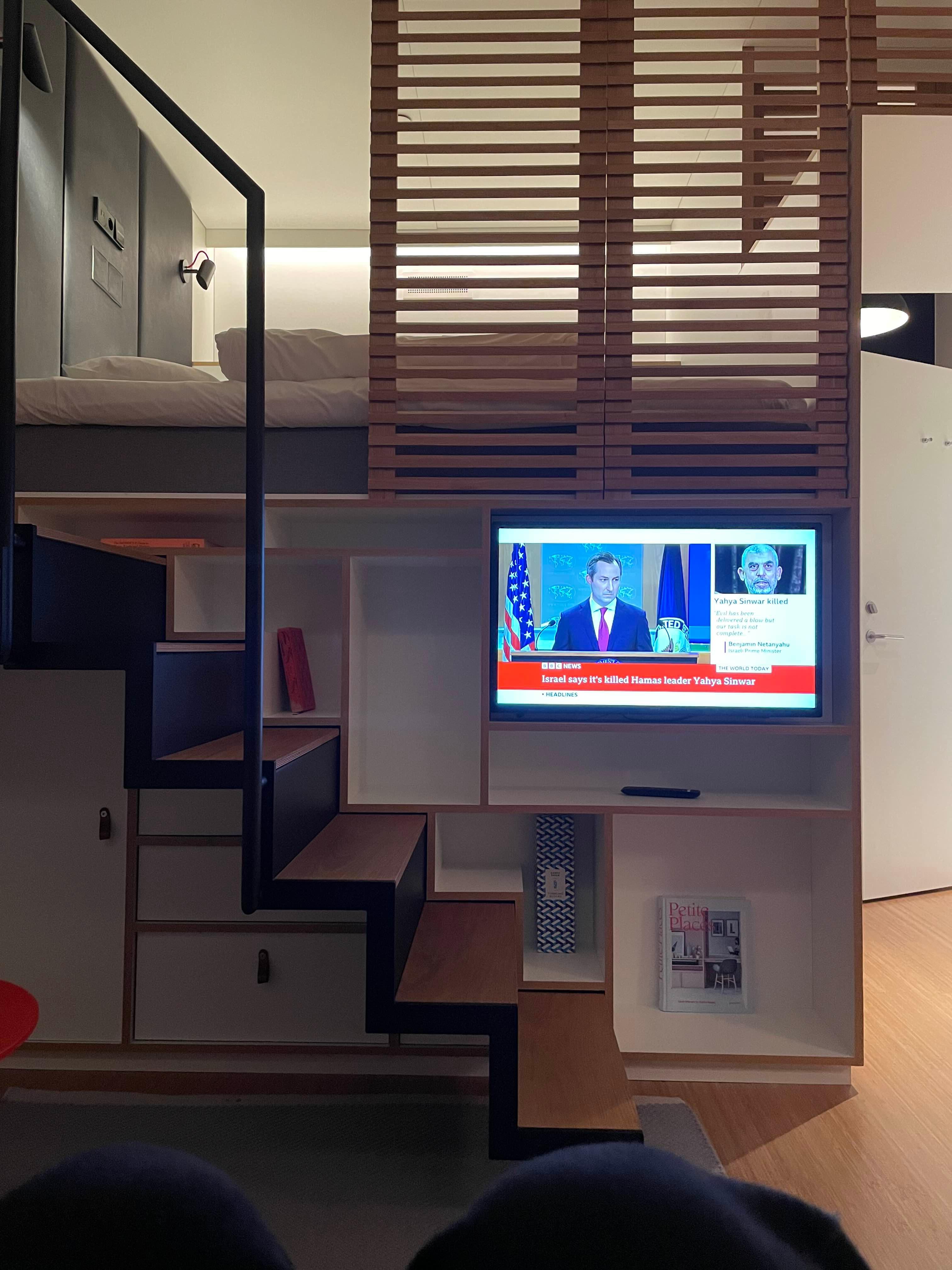 핀터레스트에서도 한참 찾아야 아이디어가 나올 것 같은 침대, 수납, 계단, TV 공간을 함께 엮은 구조로 너무 인상이 깊어 나중에 꼭 이렇게 참고해 작은 집을 꾸미고도 싶었다. 저 계단은 넣었다 뺄 수 있는 것으로 계단을 통해 침실로 이동한다.